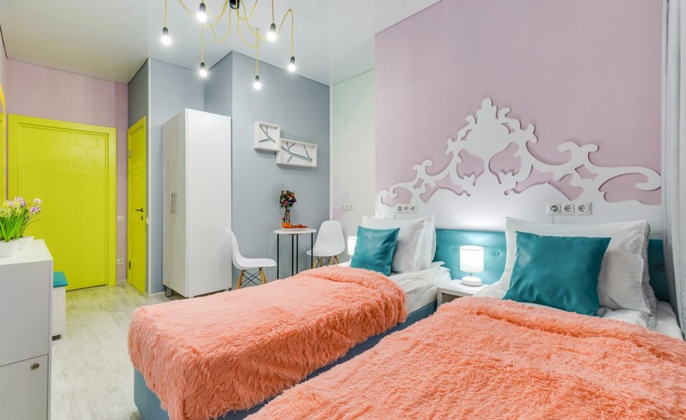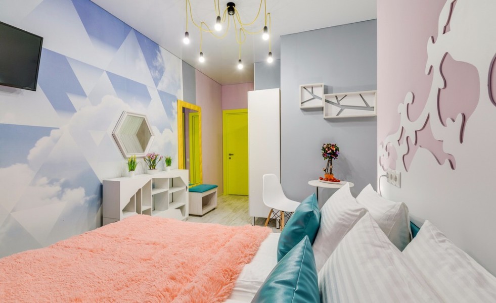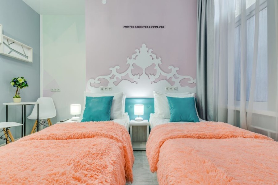 Ультрасовременный яркий номер с элементами «люкс» с санузлом и душем для комфортного проживания от 1 до 2 персон.