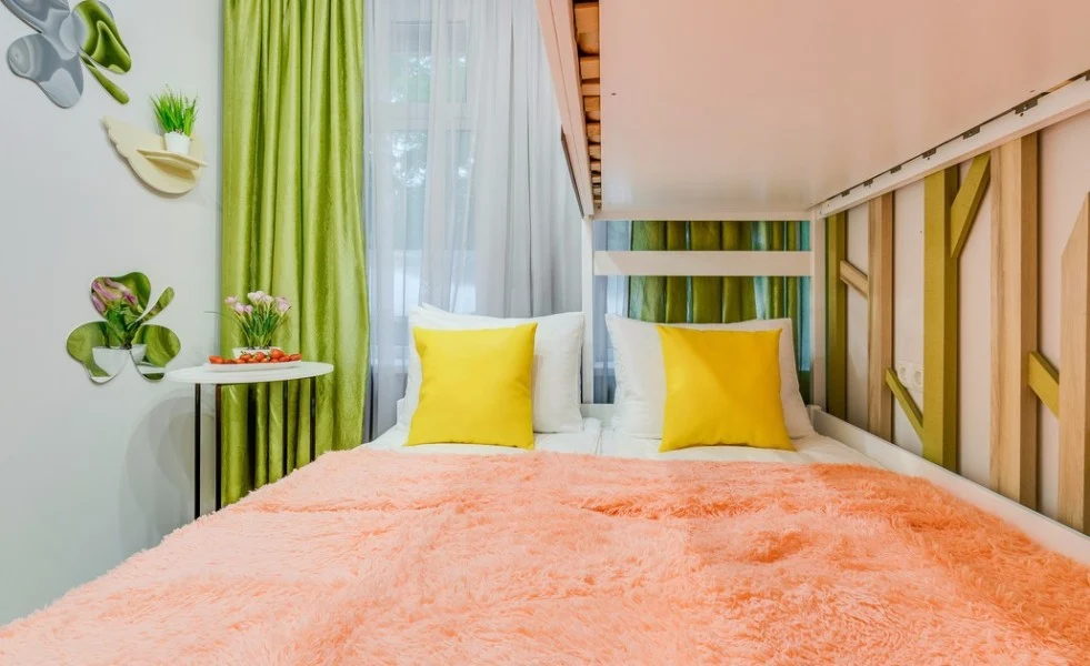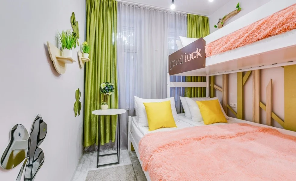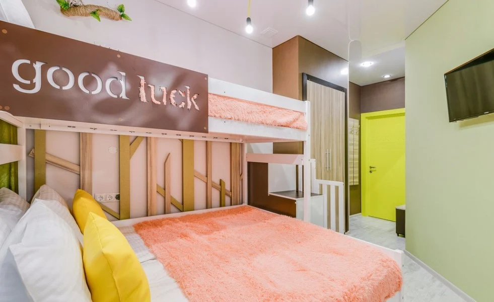 Уютный семейным номер с авторским дизайном интерьера для комфортного проживания от 1 до 3 персон. Удобства находятся в коридоре рядом с номером.